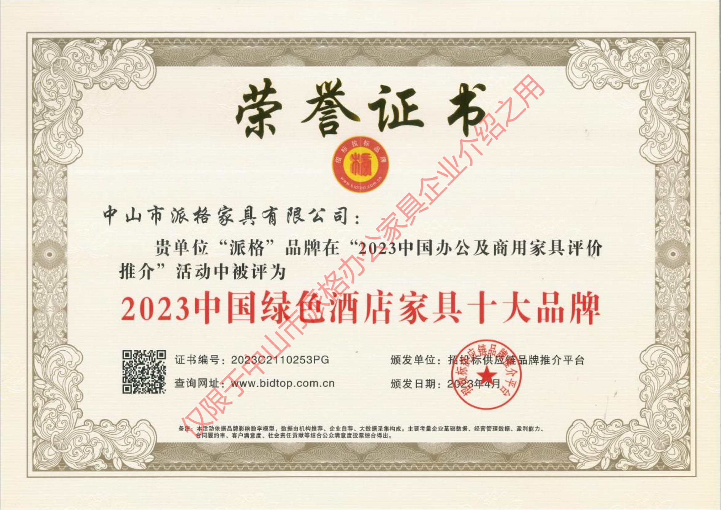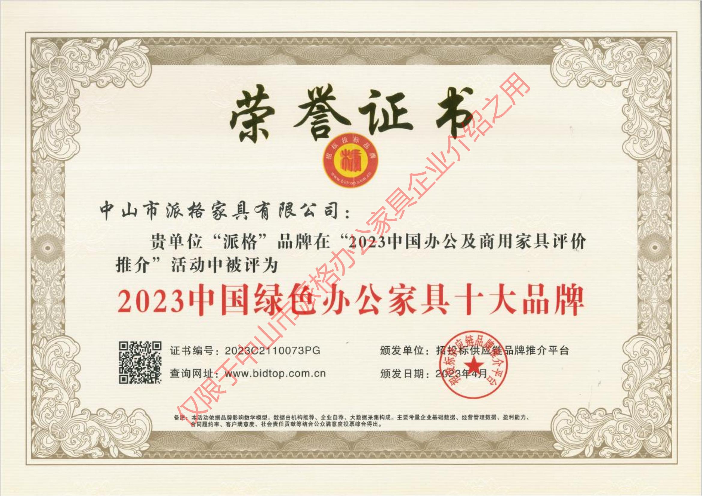 2023中國綠色辦公家縣十大品牌