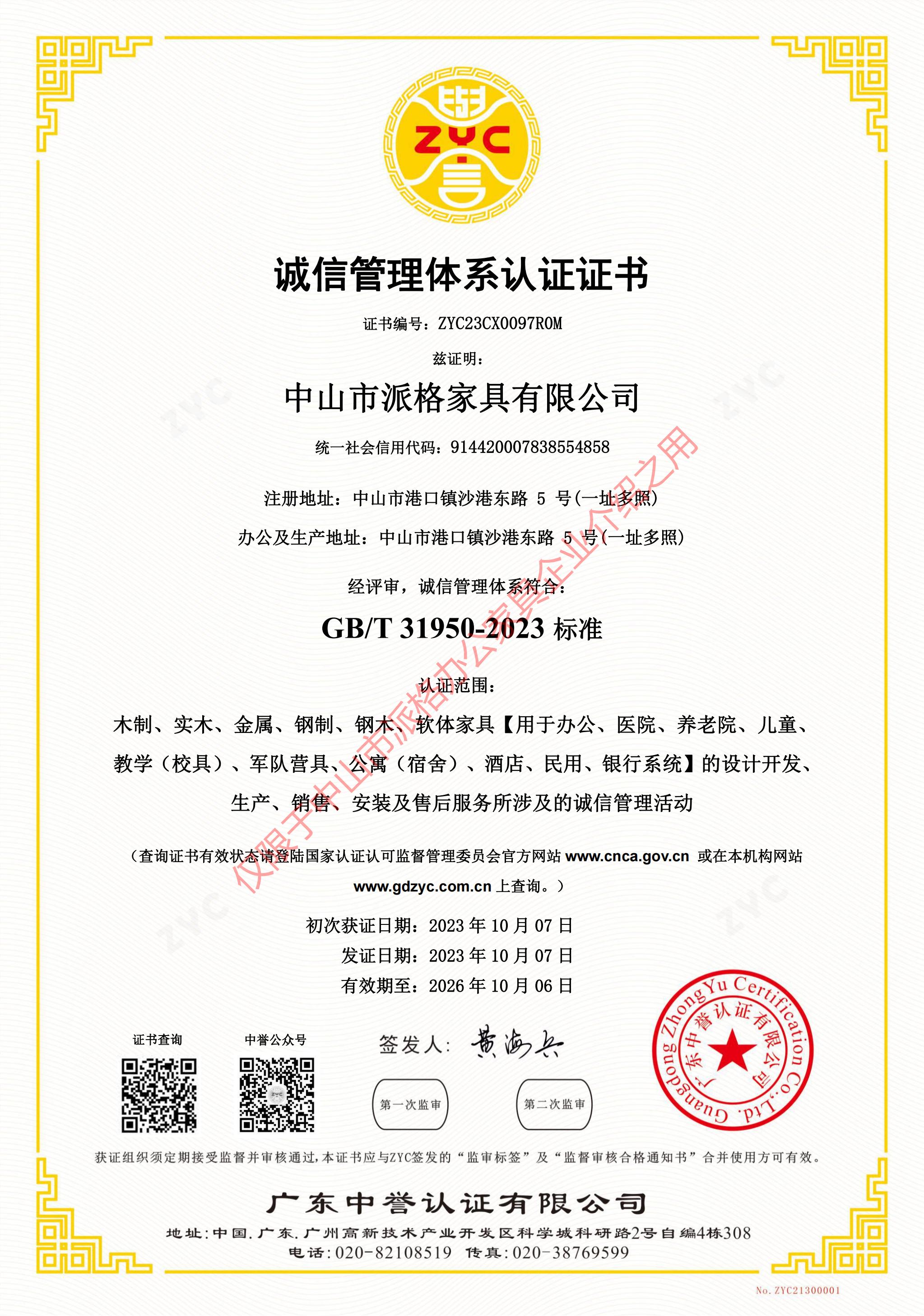 誠信管理體系認證證書
